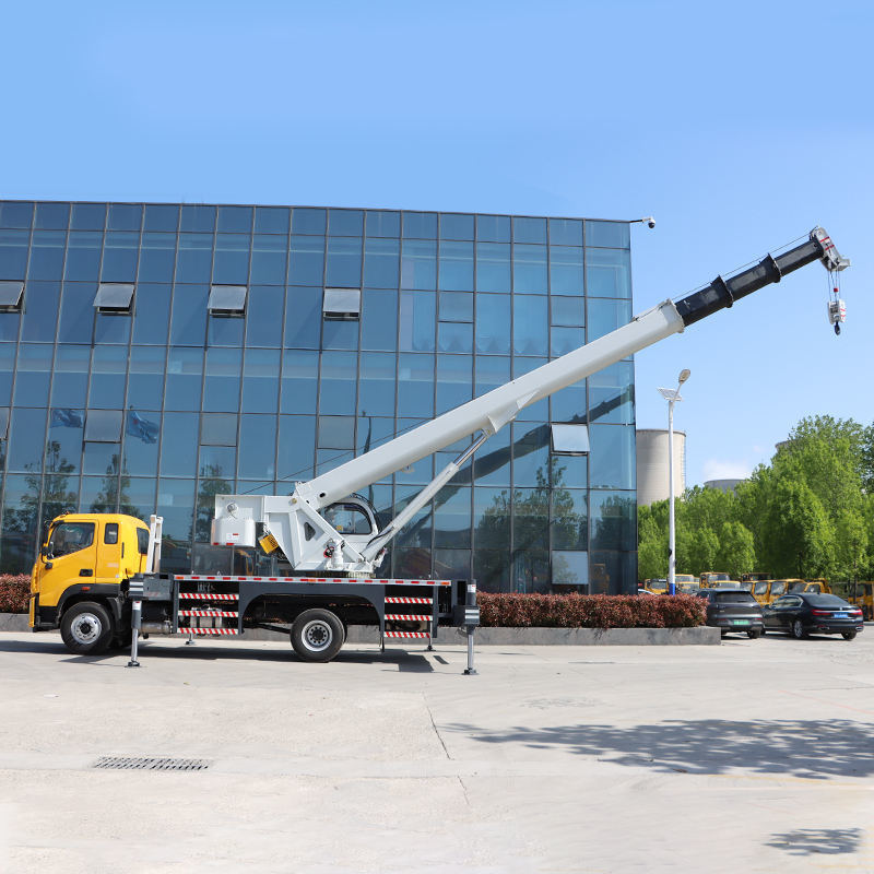 Основные компоненты крана включают стрелу, поворотную платформу, раму и опорные ноги. Его механические действия достигаются за счет движений механизмов, таких как амплитуда, вылет, вращение и подъем, тем самым завершая операции подъема. Бортовое подъемное оборудование способно работать влево и вправо и вращаться на 360 градусов, и может вращаться во всех направлениях для адаптации к различным рабочим средам.