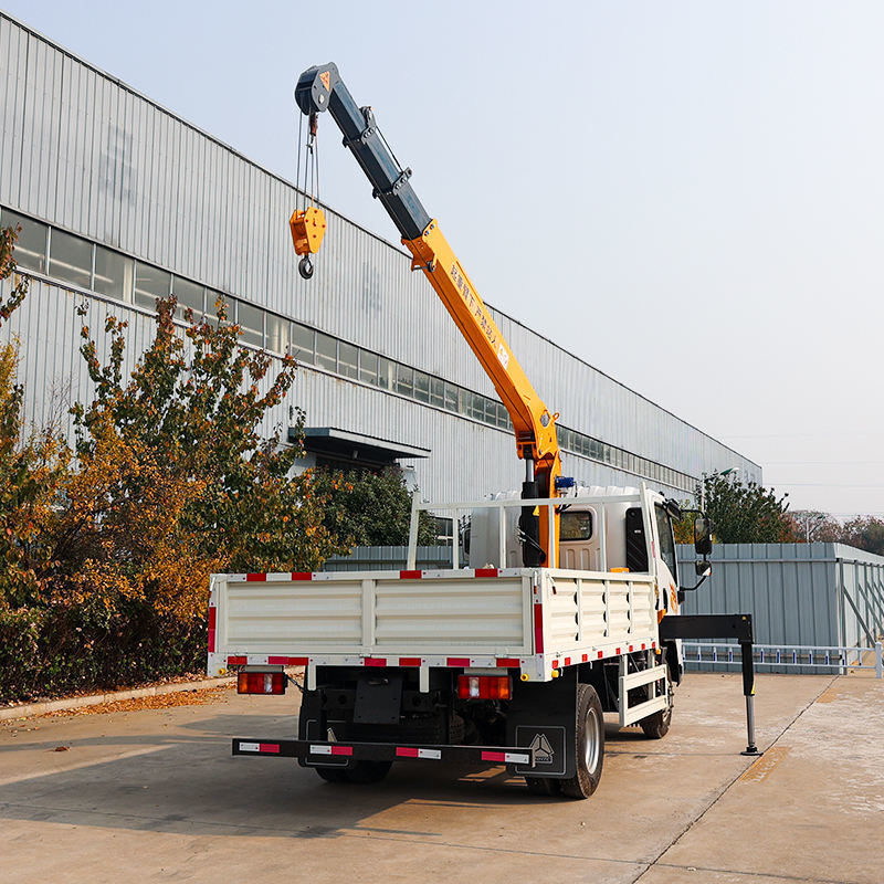 Основные компоненты крана включают стрелу, поворотную платформу, раму и опорные ноги. Его механические действия достигаются за счет движений механизмов, таких как амплитуда, выдвижение, вращение и подъем, тем самым завершая операции подъема. Бортовое подъемное оборудование способно работать влево и вправо и вращаться на 360 градусов, и может вращаться во всех направлениях для адаптации к различным рабочим средам.